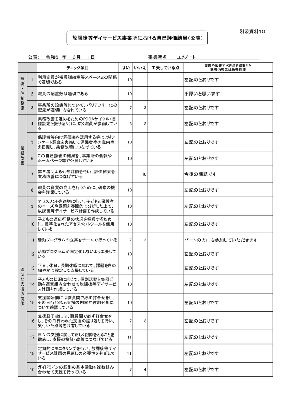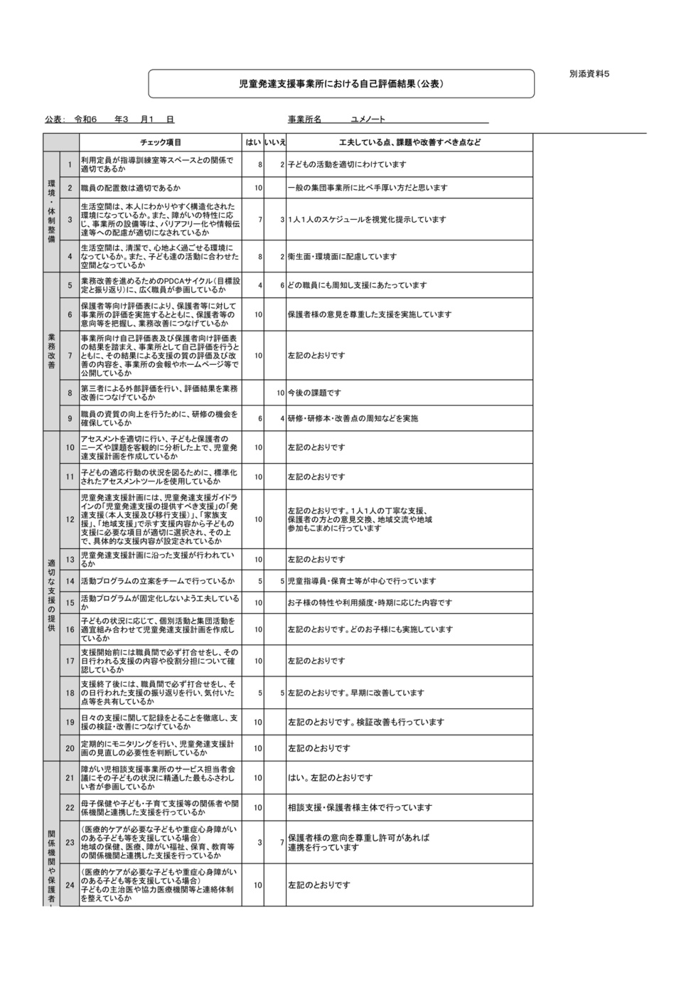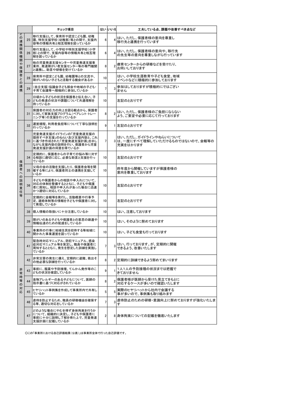 この「事業所における自己評価結果(公表)」は事業所全体で行った自己評価です。